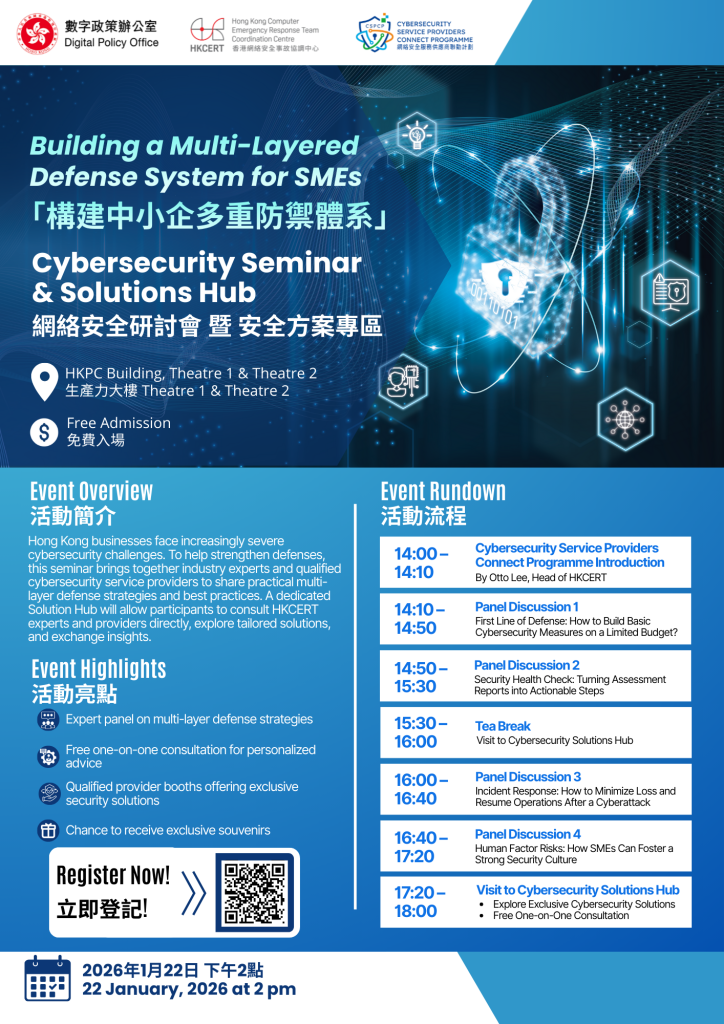 | Enquiry: | Please contact HKCERT CONNECT Programme Coordination Team at sp-connect@hkcert.org |